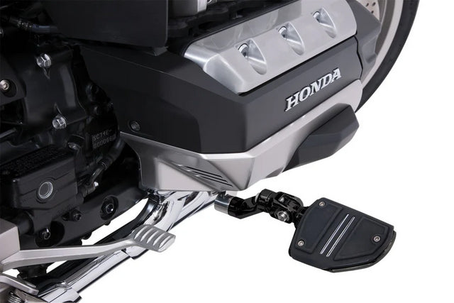 Goldstrike - 3-Way Adjustable Highway Peg Mounts with Twin Rail Footrest (pair) for Gold Wing in black.