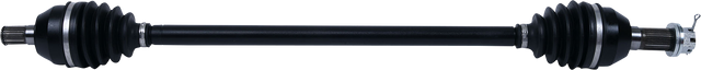 Axle is 20% stronger than OEM, 50% stronger than competing aftermarket axles and last 12 times longer than competing axles, Axle features eight precision ball bearings with cage and race sizes that are up to 35% larger for greatly increased CV joint strength, Manufactured in facilities that are certified and meet the ISO 9001 quality manufacturing standard, Designed with a larger-than-stock chromoly axle shaft and low-profile allow clamps