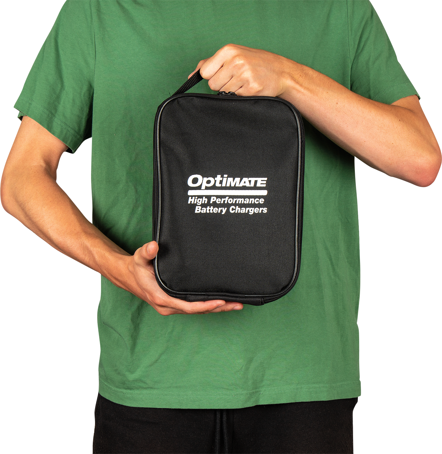 Fits all OptiMate single bank battery chargers, Accessories pouch for included accessories, The sides have cardboard inside