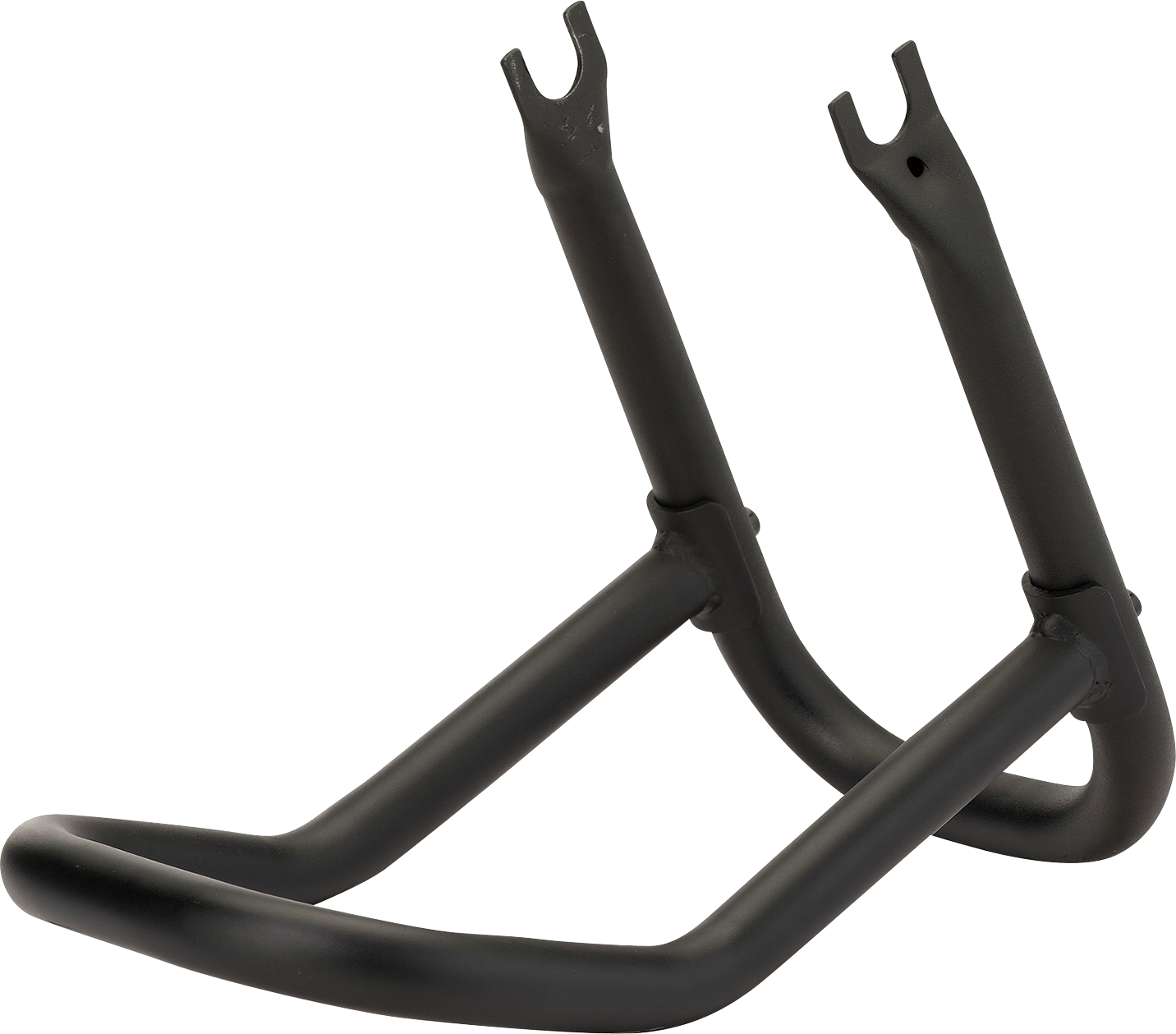 Made from sturdy steel tube with a durable black anodized finish and Moose Racing logo, Bikes' rear wheel fits conveniently between the vertical U shaped ends of the stand, Minimal assembly required