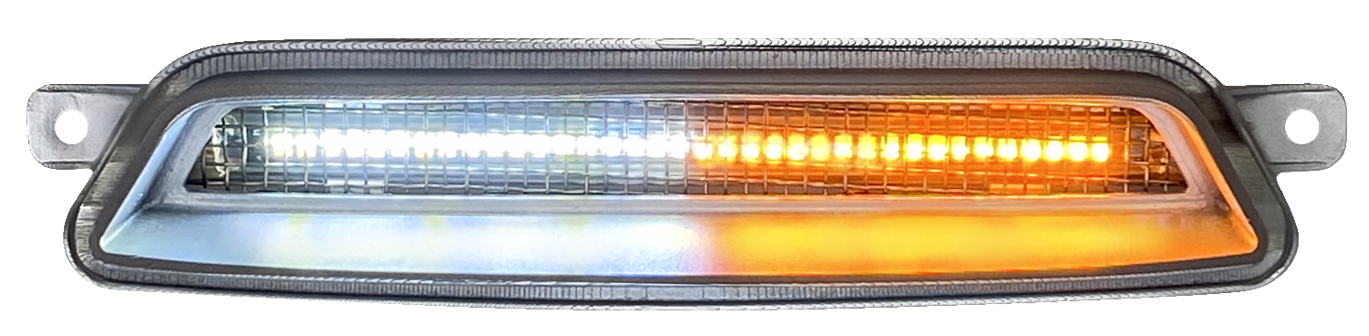Decorative fairing vent assembly replaces the OEM fairing vent with built in white running light and auxiliary amber turn signals, High-performance, dual color LEDs are packed behind each side of the stainless mesh, Adds eye-catching visibility without compromising the airflow from the OEM vent, Unit mounts using factory hardware and offers simple plug and play installation behind the fairing