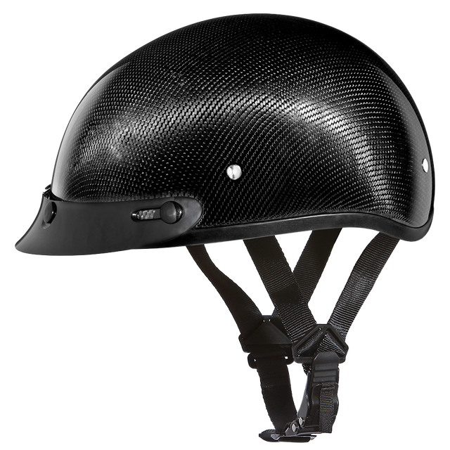 Our D.O.T. Daytona Slim Line Skull Cap 1/2 Shell Helmet In Carbon Fiber, Meets And Exceeds D.O.T. FMVSS 218 Standards And Is The Smallest D.O.T. 1/2 Shell Helmet Ever Made!! With 3 Different Shell Sizes, You're Sure To Get That Proportionate Fit!! Note The Quality In The Weaving Of The Carbon Fiber! Our Carbon Fiber Is The Real Thing!! With The Latest Technology, We Have Brought Our Carbon Fiber Standards Above And Beyond Our Own Expectations. Available With Or Without Removable, Snap On Gloss Black Mini Scoop Visor. Many More Colors And Designs Available Such As Soft Touch Dull Black, Hi-Gloss Black, Hi-Gloss White And Hi-Gloss Pink; Custom Colors: Black Cherry, Gun Metal Grey Metallic, Pearl White And Silver Metallic; Specialty Items: Leather And Graphics. Head Wrap And Cloth Draw String Bag Included. Sizes Range From 2XS-4XL.