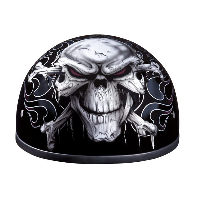 DOT Approved Daytona Motorcycle Half Face Helmet - Skull Cap Graphics for Men & Women, Scooters, ATVs, UTVs & Choppers - W/ Cross Bones