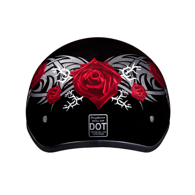 DOT Approved Daytona Motorcycle Half Face Helmet - Skull Cap Graphics for Men & Women, Scooters, ATVs, UTVs & Choppers - W/ Rose