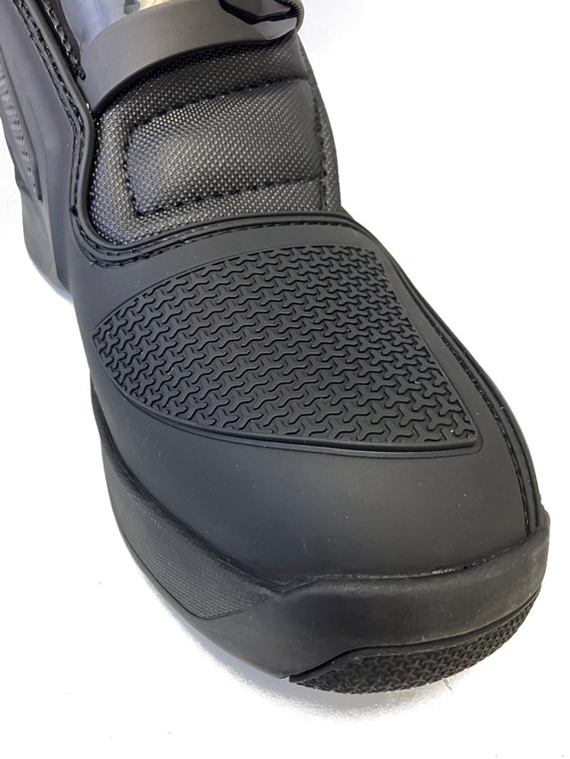 Approved to CE standard EN13634:2015, these boots meet the highest safety standards. The molded outsole not only gives a sleek, modern look but also reduces weight, while the rubber compound provides exceptional grip without compromising durability. The rubber heat shield is designed to resist melting and provides reliable grip during rides. With an elastic gaiter that seals out debris and a one-piece plastic injected 'fish tail' midsole for stability, these boots are built for the long haul.