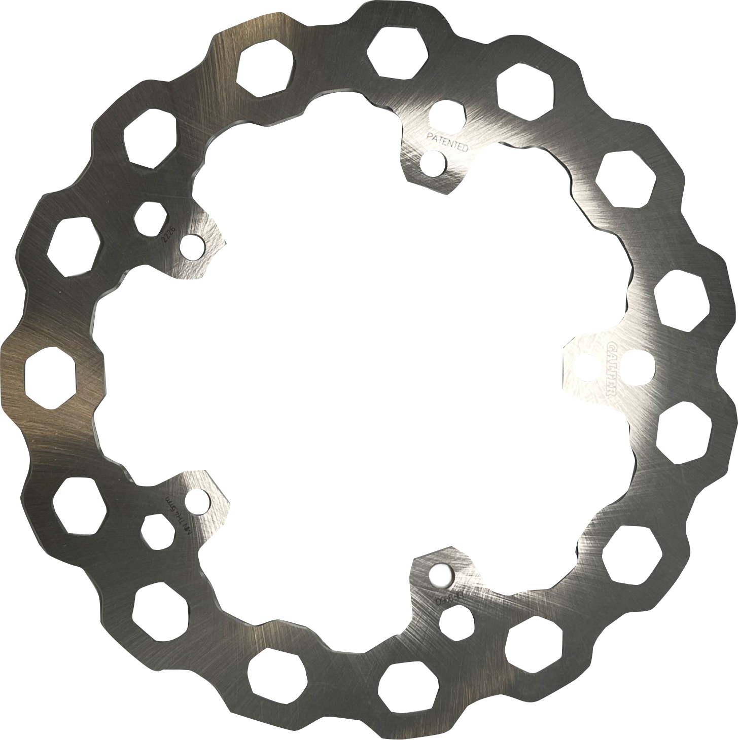 Named after the crystal steel molecules, the Cubiq brake rotor combines state-of-the-art technology with modern design, Rotor shape promotes uniform brake pad wear the contact surface between the pad and disc every revolution generates regular wear, Less unsprung weight (up to 40% lighter than standard round rotors) reduces gyroscopic effect and improves the manueverability of the motorcycle, Increased perimeter surface design generates more cooling surface around the rotor for better temperature dissipation