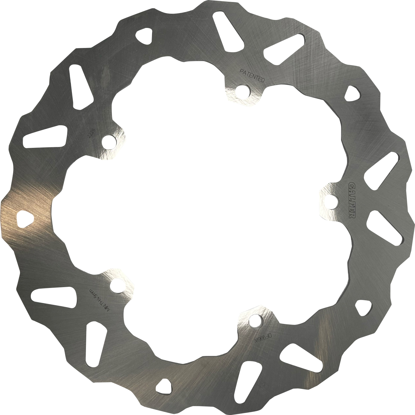 Laser-cut double disc ground 420 high carbon stainless steel, Direct-replacement brake rotors; do not require any extra parts, bolt on just like a stock brake disc, Full-floating design rotors have an aluminum center carrier, Improves brake lever feel and modulation, Rotors cool as they rotate to lower brake operating temperatures, Design is self-cleaning, removes water as it rotates, Less tendency to warp, Manufactured in Spain, For maximum braking performance and rotor longevity, Galfer recommends using Galfer brake pads with Galfer rotors.