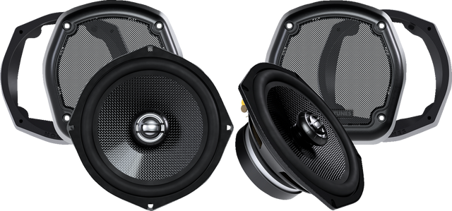 Features studio quality polystyrene capacitors for crossover, Large magnet assembly for higher power handling, Features carbon fiber woofer cone and titanium impregnated 1* tweeter, Includes mounting adaptors, mesh grills, plug and play wire harness and all required hardware, XL Model speakers work best when used with an amplifier.