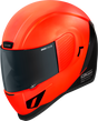 Injection molded polycarbonate shell for strength, Prolock* positive shield locking system, Continuous venting system, Fog-free ICON Optics* Shield with Rapid-Release* System, Sculpted neck roll, Internal airflow geometry, Internal Dropshield* with exterior switch, The Dropshield* visor must only be used while the main face shield is in the fully closed position, Removable molded breath deflector, Removable Hydradry* 3-piece moisture wicking liner, Internal speaker pockets work with ICON's R.A.U. Bluetooth device, Includes Clear & Dark Smoke ICON Optics* Shield, Includes Dark Smoke Dropshield*, Includes Black Airform Chin Vent*