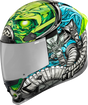 Low-profile vents throughout the shell, Sculpted neck roll reduces jacket/suit interference, Fog-free ICON Optics* Shield with Rapid-Release* system, Linear ported forehead vents, Prolock* positive shield locking system, Five-piece modular liner with moisture-wicking Hydradry*, Removable breath deflector and chin curtain, Handcrafted composite fiberglass FRP (fiber-reinforced plastic) shell, Includes Clear & RST Silver ICON Optics* Shield
