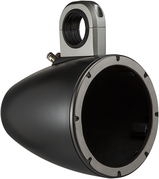 Designed with a 360-degree axis rotation delivers sound in any direction, Slatted mounting holes for a variety of bolt patters, Fits frame tube sizes 2-1/4", 2-3/8", 2-1/2", 2-5/8", Also compatible with 1-1/2" round tubing without rubber inserts., Mounting hardware and polyfill included