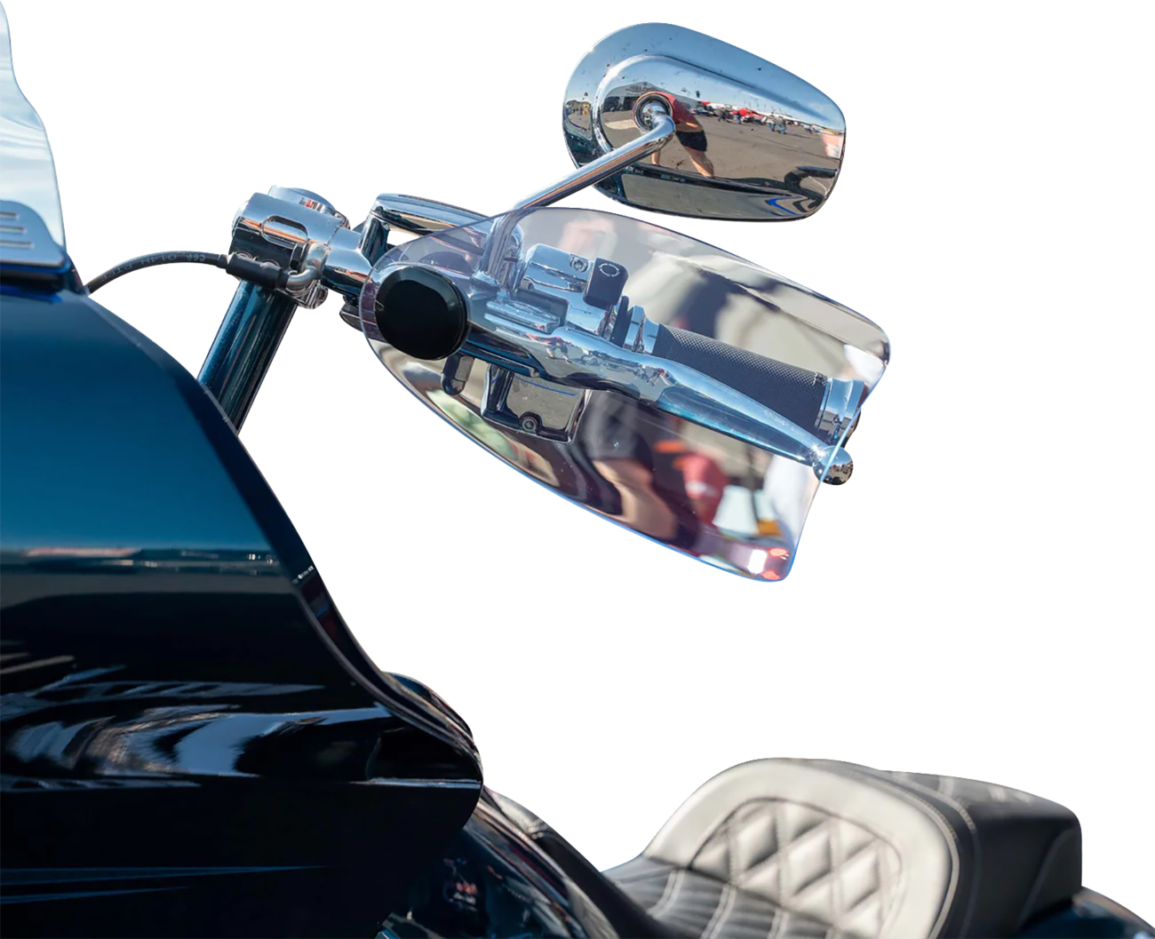 Classic tint options provide a greater level of durability and are crafted from a high-quality polycarbonate, Designed to look great as-is but can be painted for a personalized touch (results may vary), Simple setup so you can get back on the road fast., Clean with gentle solutions like Shine Werks? or mild soapy water; avoid ammonia, alcohol, or solvent-based cleaners (like Windex?) to preserve tint, coating, and UV protection; if using dish soap, follow with a wax-based cleaner like Shine Werks? for optimal performance, Manufactured from aluminum, the hardware come in black and are e-coated from out of the box; for something more custom, hardware can be stripped, polished and anodized to color match build components, Includes Flare? handguards and necessary hardware, Made in the USA: Built with pride and precision, Fitment is subject to the variants such as turn signal, handlebar, and windshield configurations; certain handlebar and windshield combinations may have clearance issues; we recommend holding the handguards and bracket hardware up to your handlebars to anticipate any contact issues before installation; contact issues will likely only occur in close quarters/parking scenarios., Not for use with '04-'13 Sportster models without shims, '04-'23 Sportster models with offset mirror brackets, or Sportster models with bar-end mirrors.