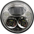 Complex reflector design features three low-beam LEDs and two high-beam LEDs; optional hi/low adapter allows all to be lit at once, Combination of reflector and projector type LEDs results in superior light output, Integrated LED halo, Polycarbonate lens for light weight, LEDs reduce high- and low-beam current draw, 5800K light color temperature, H4 connectors