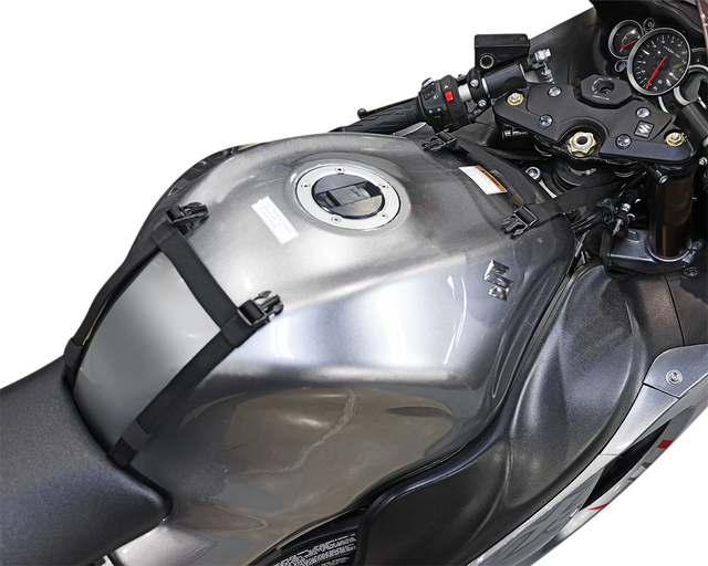Industry leading UltraMax? fabric, Maximum UV protection against fading, Universal fitment attaches to metal, aluminum, plastic tanks, Dual mounting systmen hidden under nonslip protective base, Includes four shielded magnets and 4-point strap mount system, 100% waterproof rain cover included, Molded EVA panels allows bag to hold shape, Reflective piping and light gray lined interior, Expandable for added sotrage and mesh pocket under lid, Adjustable internal organizer panels, Map panel is touch screen device friendly, Charging cable port pass through, Hydration ready (CL-Hydro-S sold separately), Expanded dimensions 13"L x 8.5" W x 8" H, Lifetime warranty