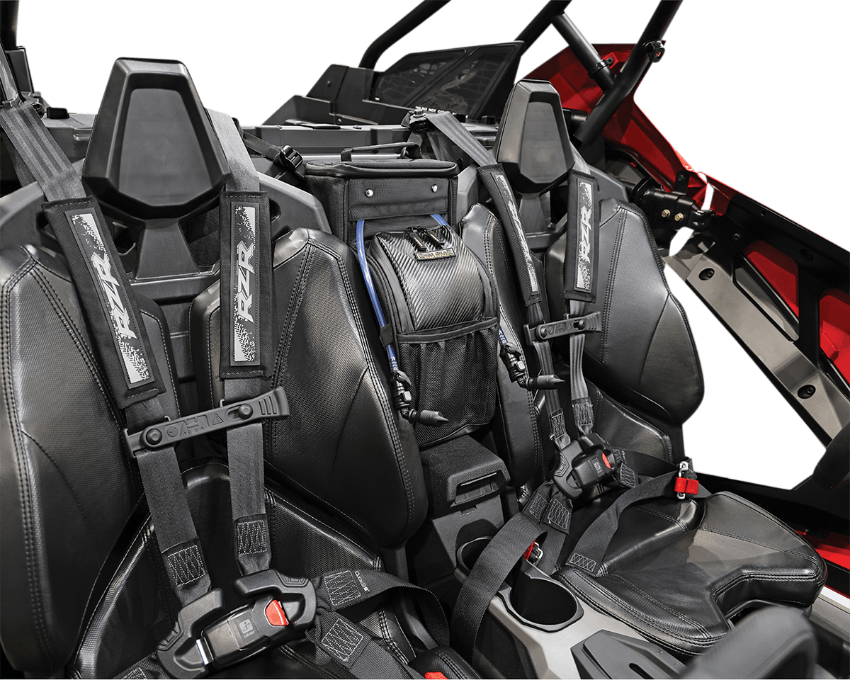 Made with Industry leading UltraMax? fabric, Maximum UV protection against fading, Universal Fitment on most UTV models, Main compartment includes (2) 2-liter water bladders, Bladders have capped bite valve with flow control switch, Waterproof removable liner for cleaning and replacement, Front zip and mesh pockets for added storage, Water resistant zippers help keep out dust and dirt, Hydration Pocket 8* L x 5* W x 16* H 10.5 Liters, Front pocket: 8* L x 5* W x 11* H 7.2 Liters