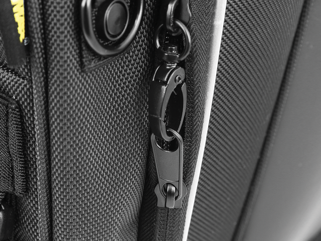 UltraMax? fabric for maximum UV protection, Mounts to tour trunk racks, sissy bar, Rigid construction and solid base panels, and base panel can be removed for cleaning, Side panels unzip allowing maximum airflow, Small permanently-open side mesh vents, Large lid opening for ease of access, Lid has two-stage zipper opening; first stage allows flap to open with mesh closed, second stage opens mesh to allow pet to look out while on integrated leash, Both lid panels roll back, with tab to secure open, Wide front panel also has two-stage opening; first stage opens mesh porch, second stage opens completely, All two-stage openings zippers securely latch together, Adjustable leash allows pet to move freely, Two side pockets for storing pet essentials, Carry handles make for easy transport, Reflective piping, For pets up to 20 lb.