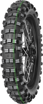 Designed for enduro FIM competition for all terrain types with best in class performance with outstanding traction, stability and resistance to wear in wet and dry conditions, Light carcass construction with ultra gummy compound, especially designed for low speed extreme enduro, ideal in wet slippery conditions, An ultra-soft carcass construction, making it an unrivalled choice to conquer steep technical sections and slippery rocks, Features a specially designed knob design respecting FIM racing standards, Identified by the characteristic double green stripe which combines the super light carcass with Mitas gummy compound for low speed; highly technical racecourse use only (i.e. extreme enduro only), Tread designed for optimum performance in hard, rooty or challenging conditions requiring maximum footprint, Competition tire for use on enduro & dual sport motorcycles (20/80 road to dirt dual sport application), Replaces EF-07. Junior/Mini fitments available.