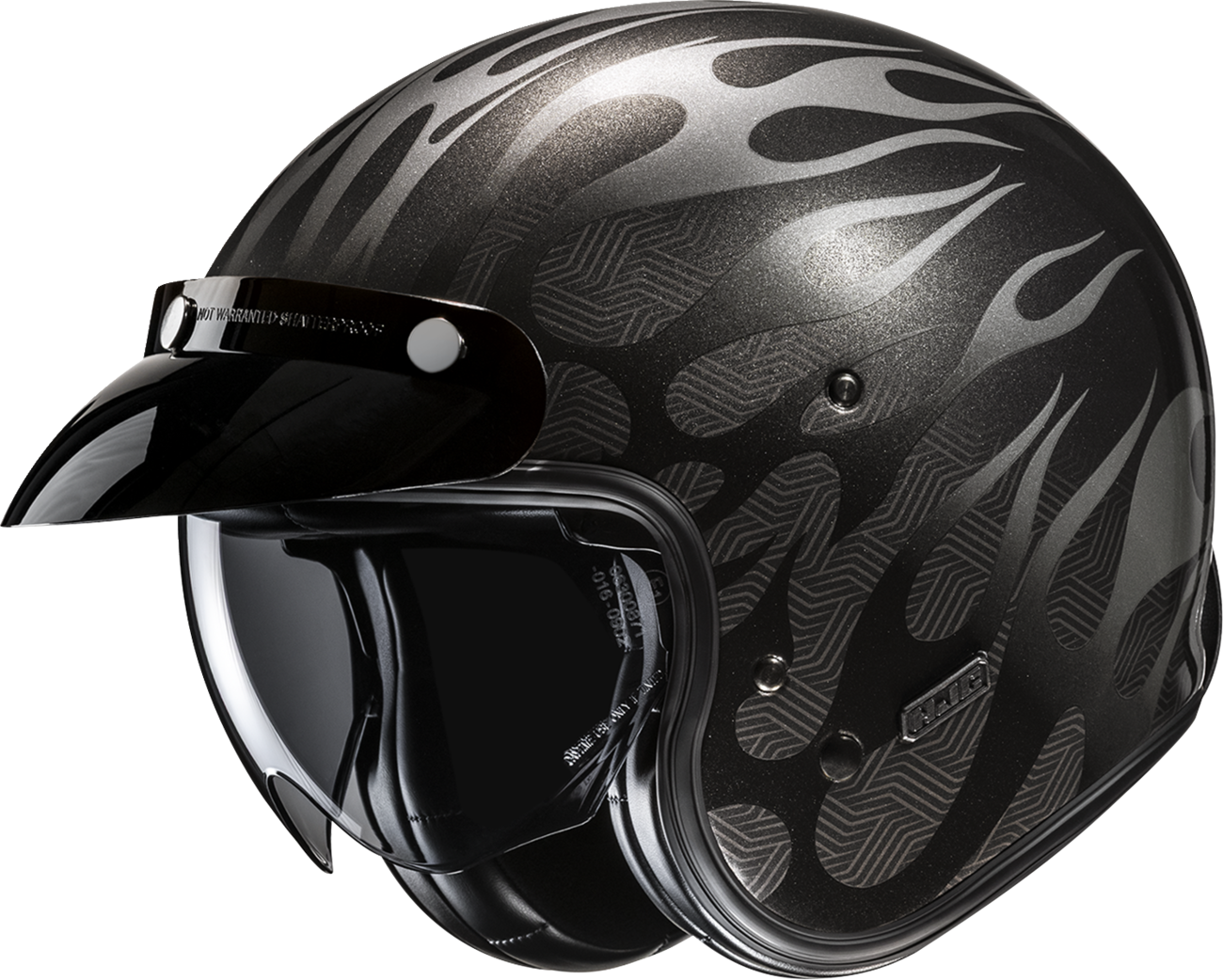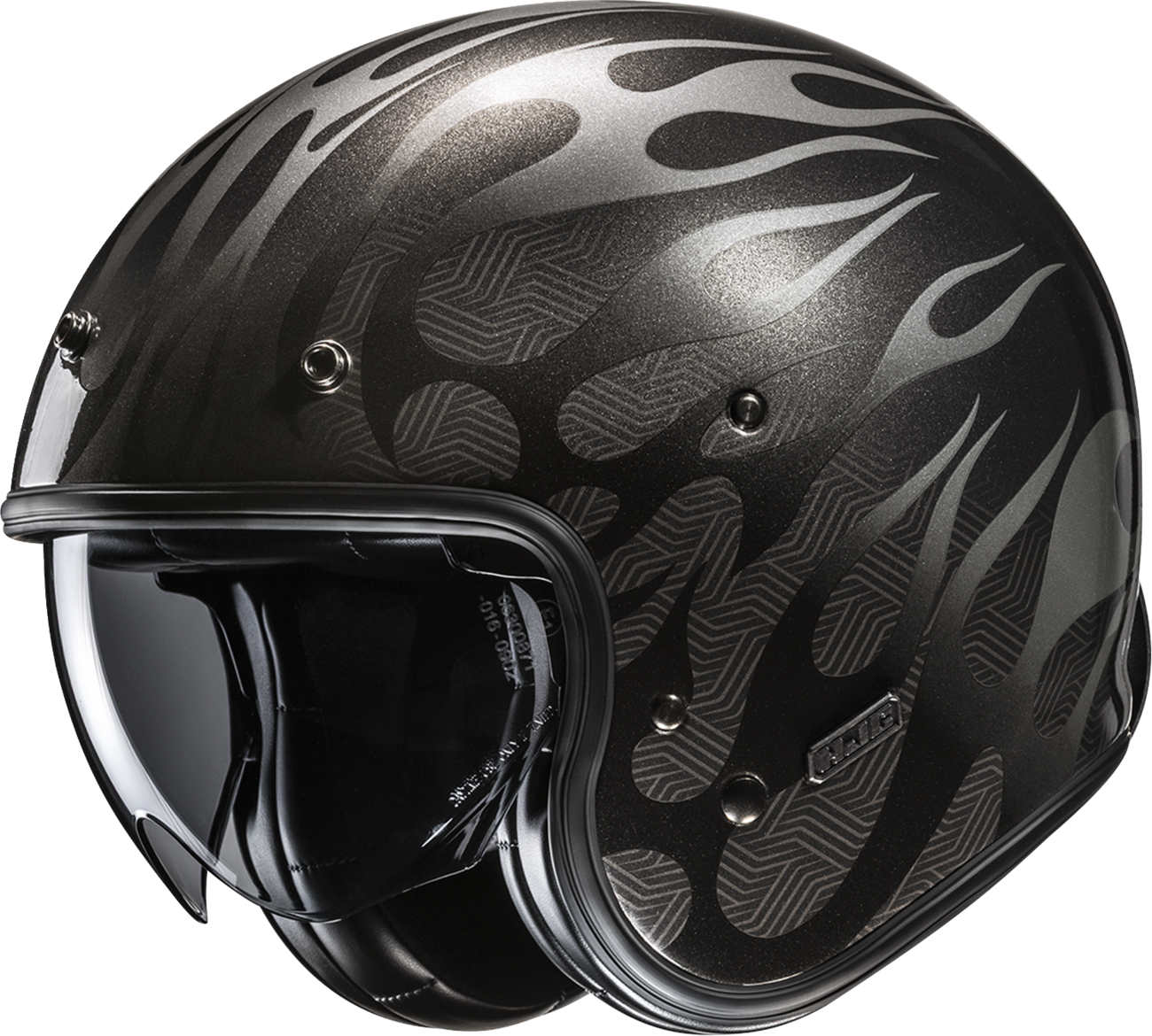 Retro-style open-face helmet composed of an advanced fiberglass composite shell to provide a lightweight helmet, This 3/4 helmet features an integrated three position visor with anti-scratch coating that deploys easily to slide up or down, To enhance the vintage feeling the V31 is fitted with leather and suede interior and goggle strap holder, The ear padding are removable and washable and speaker pockets are prepared for Bluetooth communication, Fiberglass Shell — Advanced fiberglass composite shells are designed to be wearable, comfortable, and lightweight by utilizing CAD technology, Adjustable Visor Positions — Anti-fog coated smoke-tinted visor deploys quickly and easily, Peak Visor — 3-snap buttons are ready for peak visors, Perfect Fit Interior, Stitched leather and suede interior, Anti-bacterial fabric provides enhanced moisture-wicking and quick-drying function, Glasses grooves can accommodate riders who wear glasses, All sizes interchangeable cheek pads for custom fitting, Washable comfort liner and cheek pad