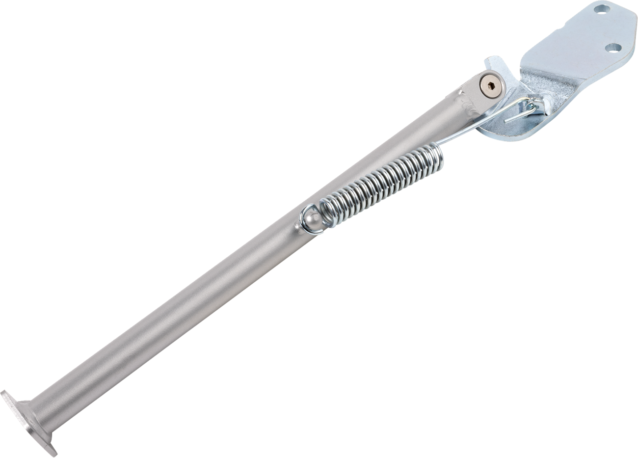 Seamlessly mounts behind the foot peg, Powder-coated steel shaft and sturdy 1/4" steel mounting bracket make a lightweight, yet heavy-duty stand, Perfect for those unexpected rest stops along the trail and imperfect ground, Easy installation and removal with only two bolts (included when necessary), Heavy-duty spring prevents dropping down during aggressive riding environment, Strong enough to pivot bike on stand to adjust or lubricate chain, Made in the USA