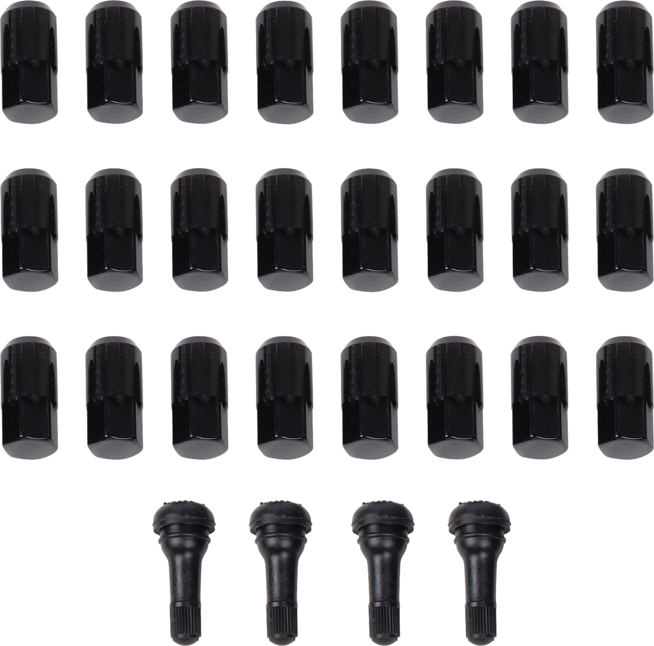 Lug Nuts with Valve Stems - 12 mm x 1.50 - Black - Tapered - 24 Pack