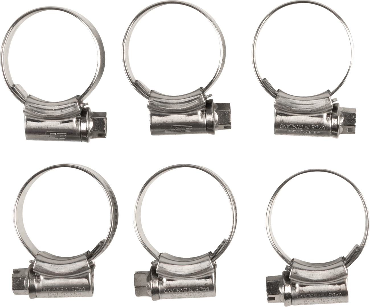 Made from 18/8 marine-grade 100% stainless steel have rounded edges that prevent the clip from cutting into the hose and a non-perforated band prevents clip from biting into the hose