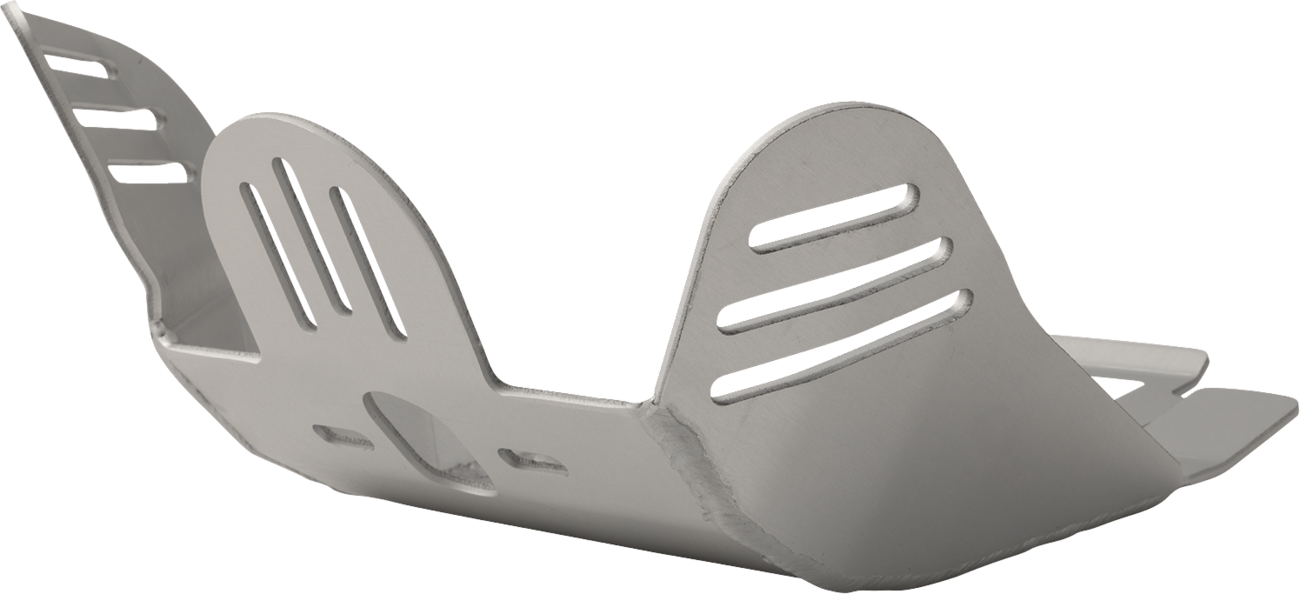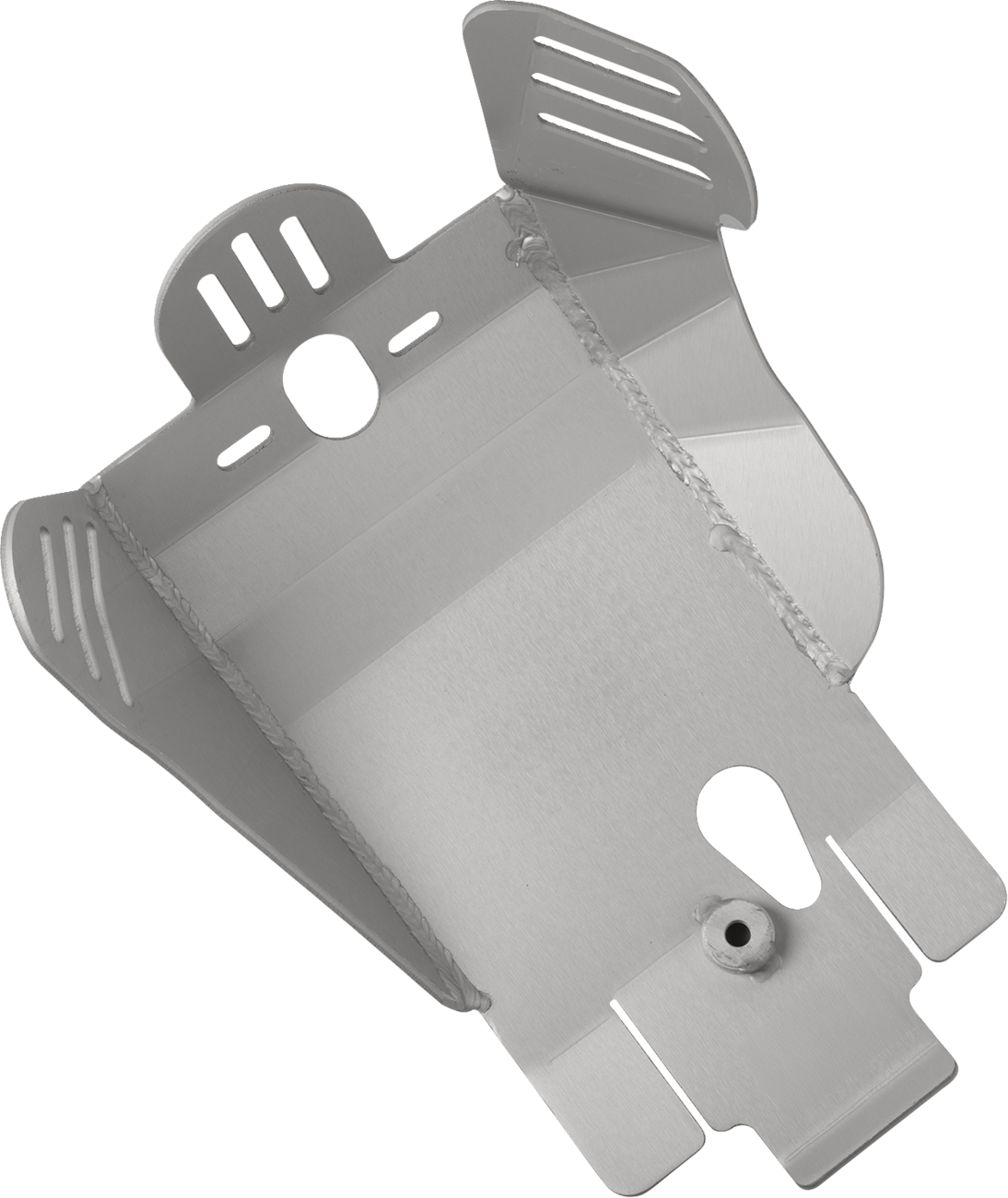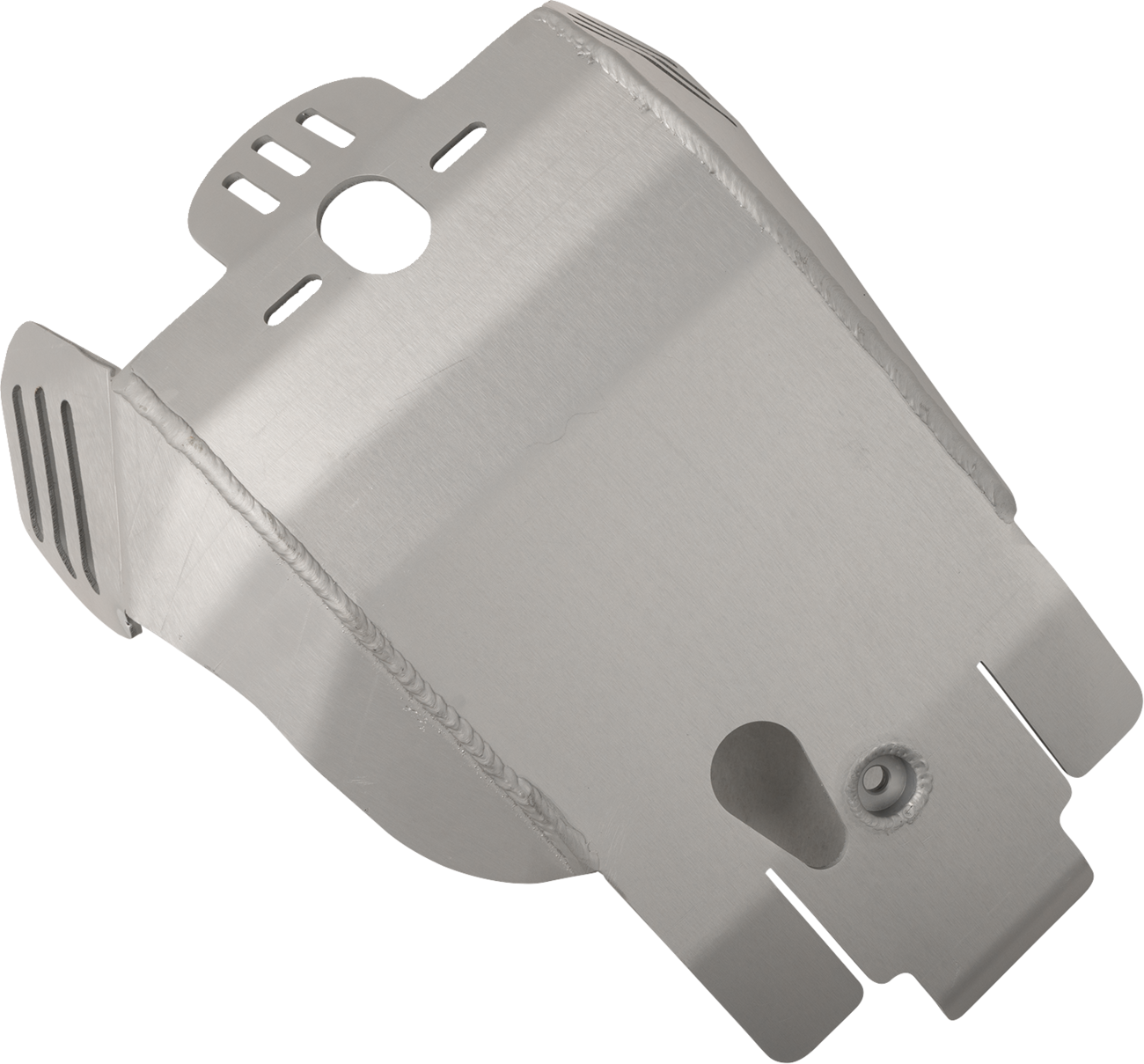 Protects vital engine parts and cases from rocks and debris, Clear anodized for corrosion protection and good looks, Skid plates made from 3/16" 5052 H-32 aluminum, Smooth underside won't snag when crossing logs, Oil drain hole on all required models, Heat-treated chromoly steel clamps keep plates mounted securely, All mounting hardware included, Made in the USA