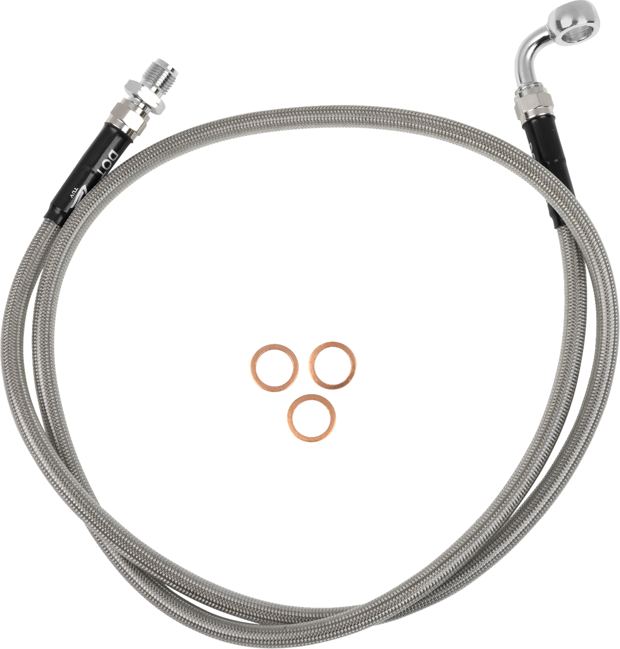 Swivel union ends are the secret to easier fitting, and ensure a kink- and stress-free installation, Venhill Engineering in the UK makes Moose Racing Stainless Steel Brake and Clutch lines to the highest specifications, Each line is made from top quality DuPont Teflon?-coated hose, wrapped with British-made stainless steel, and PVC-coated for protection and great looks, Rubber protection boots and extra-rigid tubing are used to protect vulnerable areas from heat and impact and to prevent hose flex under compression, Each line is designed to withstand a minimum of 14,000 psi, Installing Moose Racing stainless lines gives a large performance increase by significantly reducing expansion under pressure and absorption of water when compared to stock rubber hoses