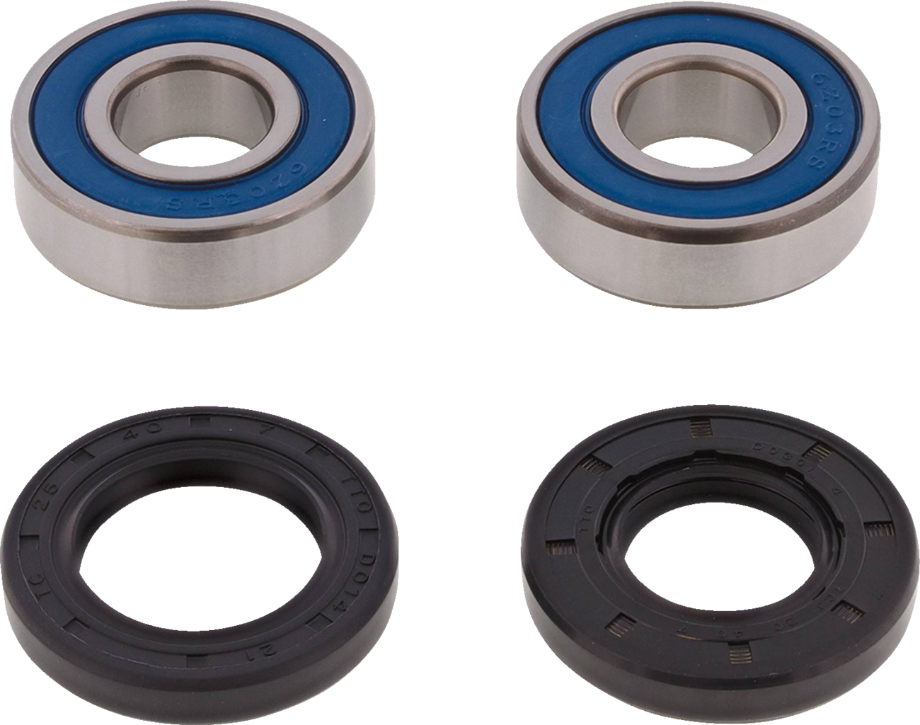 Bearing seals are double-lipped rubber that provides superior exclusion of water, dirt and sand with improved grease retention, Steel garter spring guarantees constant pressure on the axle shaft, extending the life of the seal, Wheel seals are type TC nitrile elastomer, specifically designed to keep out water, dirt and sand, Packed with Chevron SR1-2 high-performance grease with rust and oxidation inhibitors, Seals have a rubber-coated outside diameter that creates an optimum seal at the hub, Kit includes all required bearings and seals to refit a wheel, High-speed, low-drag bearings are EMQ quality, Kits are per wheel., For MX1 hubs.