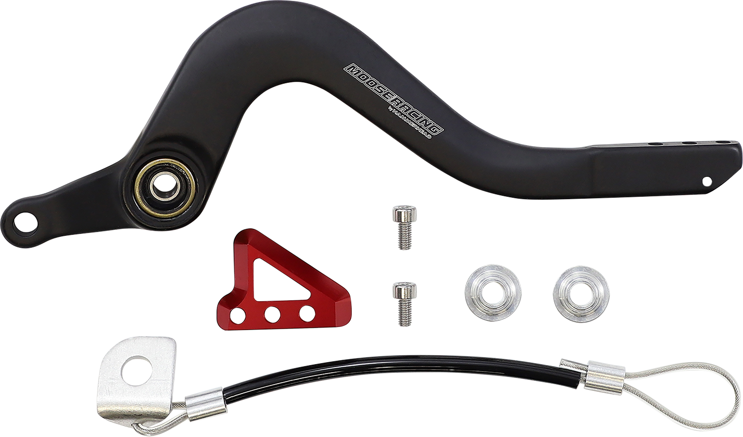 Moose Racing has teamed up with Hammerhead to bring you the ultimate brake pedal, The brake pedal arms are forged from 6061 with stainless steel clevis pin sleeves and brass mounting bolt sleeve bushings, Brake tip is finely machined CNC part with stainless steel set screws for durability and grip, Brake tips can be adjusted for length in two mounting positions and are connected with stainless steel socket screws, The brake pedal arm is anodized in a matte black finish and the tips are anodized in colors per bike brand, Every brake pedal also comes with a stainless steel brake snake, Anodized with UV protection to preserve color, Made in the U.S.A.