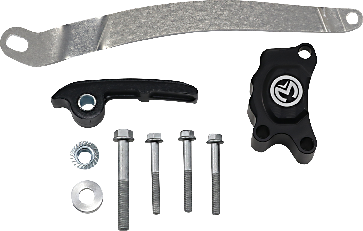 CNC-machined aluminum is black anodized and contrast cut for stylish, functional protection, Specialized applications guard hydraulic clutch cylinders and feature knockdown bars to keep your chain in check, 2-stroke versions come with a knockdown bar; 4-strokes reuse OEM knockdown bar, Mounting hardware included, Made in the U.S.A.