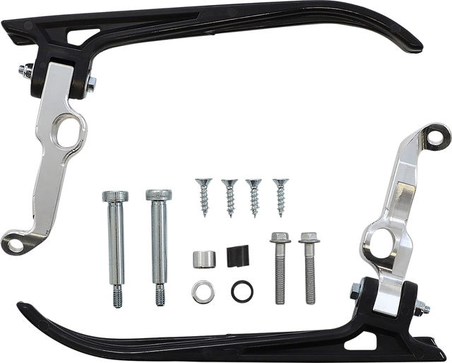 Designed for open-ended moto roost deflectors, Mounts on clutch perch and brake levers, replacing mounting caps, Saves valuable space on handlebars for controls like kill switches, e-start buttons, hole shot buttons, map switches, light switches and more, Composite deflector arm has a pocket milled into it, allowing the composite arm to have a controlled flex, Composite arm paired with aluminum mount makes this the strongest open ended deflector on the market, For use with Countour 2 Roost Deflectors