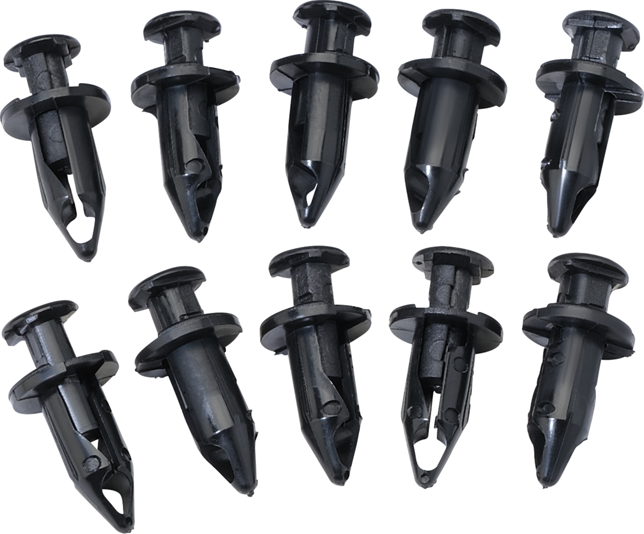 Strong nylon push and pry rivets in factory sizes, Each style comes ten to a package