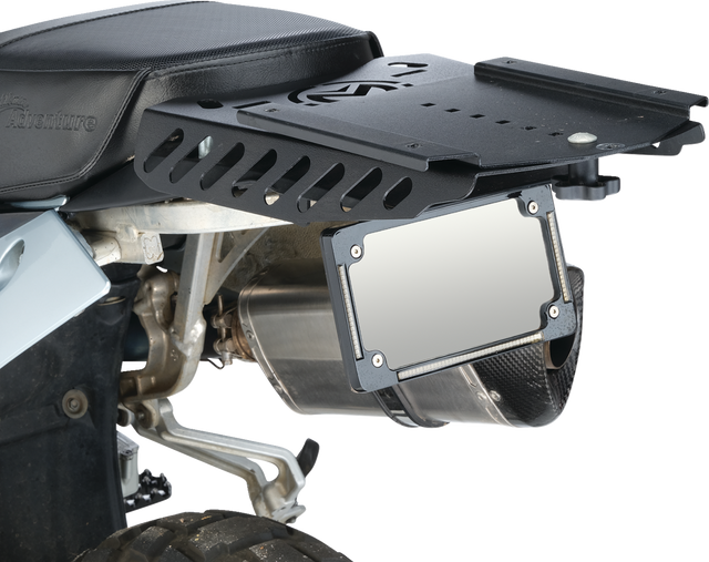 Add convenient storage and function to your Adventure bike with these durable rear racks, Laser cut from 12-gauge, grade 50 steel with durable matte black powder coat finish, Multiple tie down locations and slots for bag straps or bungees, Add additional storage capability with optional Universal Attachment Plates (sold separately), All mounting hardware and instructions included, Rear rack weight limit 25 lb.