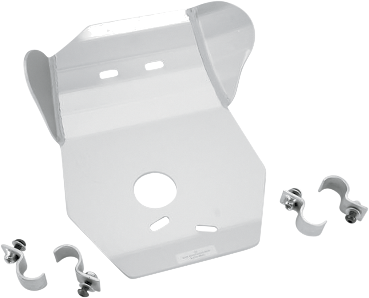 Protect vital engine parts and cases from rocks and debris, Clear anodized for corrosion protection and good looks, Skid plates made from 3/16" 5052 H-32 aluminum, Smooth underside won't snag when crossing logs, Oil drain hole on all required models, Heat-treated chromoly steel clamps keep plates mounted securely, All mounting hardware included, Made in the U.S.A.