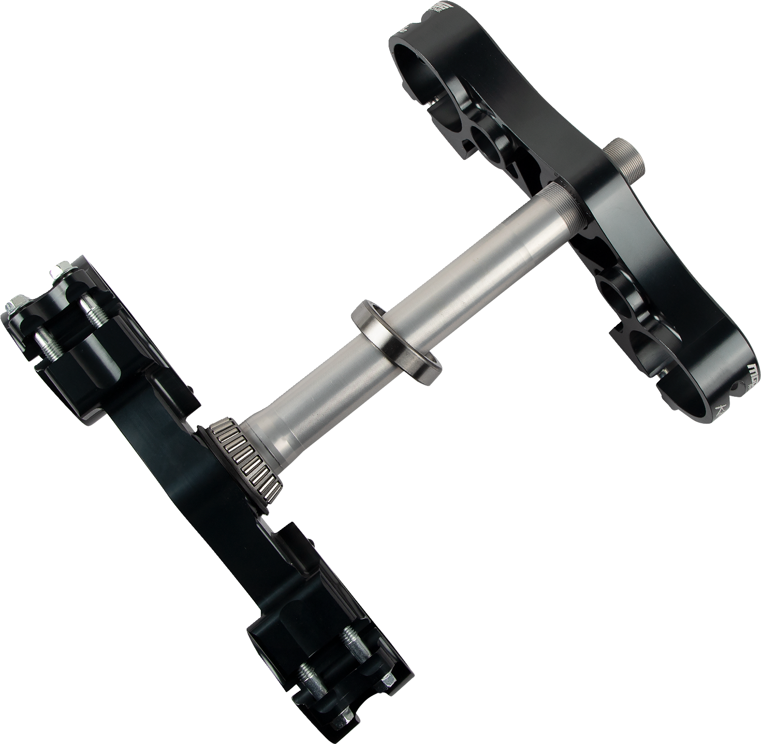 Durable high quality 6082 aluminum to optimize rigidity and reduce weight, Steering stem comes pre-assembled and is pressed into lower clamp which includes OEM bottom bearings, Split design clamping area provides more accurate pressure and an even clamping surface to the fork, without distortion or binding of the fork tube, Bar mounts available in 1-1/8* diameter with either 35 mm or 40 mm rise (sold separately), Bar mounts come standard with rubber cones, solid aluminum cones are also available (sold separately), Standard offsets, Made in Italy