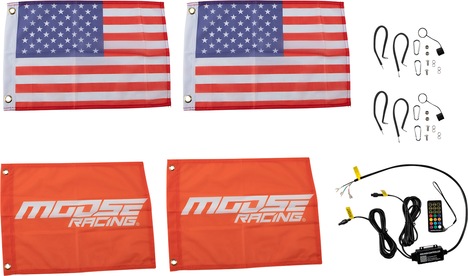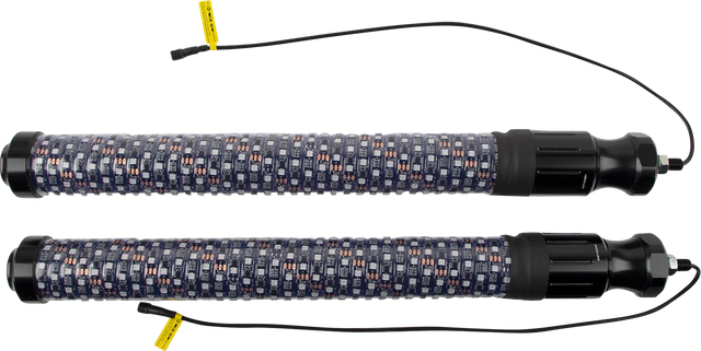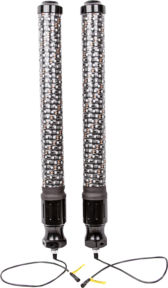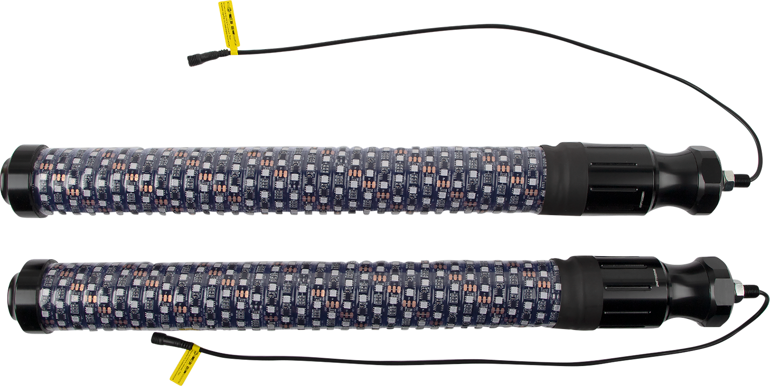 2" inner diameter tube and more LEDs than a 5' Chasing whip, The quick release are quick to remove, and quick to install, The innovative Chasing whip bases feature all the wiring that the whip needs built inside the base itself, Bluetooth control via a free, easy-to-use app. Provides ultimate functionality including music sync, color, pattern and light effect customization, color brightness speed control, and group LED control, Chasing function with 300 different colors and 200 patterns, including flash, strobe and fade-through colors, stream, cascade and different color combinations from top, bottom, and middle; adjust speed/brightness or lock on one color, IP67 dust and waterproof, Included flag is interchangeable or remove it completely, Includes: 2 whip lights, remote, wiring harness, Moose flags, American flags, dust caps, flag hardware and install instructions