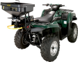Use this dry-material spreader for seed, dry granular fertilizers, pesticides and ice melting materials, 2.2 cubic foot polyethylene hopper, 12V motor with variable-speed control and on/off switch, Variable speed control lets you vary the spread width from 5 to 45 feet, Stainless steel radial 6-blade fan, Holds up to 145 lb., Cover sidewalks to parking lots with ice melt or salt, Can also be used for lawn fertilizer; not for use with sand, Mounting brackets included, Not for Polaris composite racks, No material agitator, Made in the USA