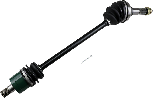 Precision machined and heat treated solid chromoly steel center shaft, cages, races and ball bearings up to 35% stronger, Highest quality, most reliable, and toughest constant velocity axles on the market, Manufactured in a state-of-the-art ISO9001 and TS16949 certified factory, Induction heat treated joints packed with high performance moly grease, Designed to withstand the most rigorous conditions and terrain, High-strength spring steel retaining clips (where required), Torture tested to failure to ensure maximum durability, Exceed OEM quality in fit, form and function, Secure stainless steel dust boot clamps, Fully assembled for easy installation, Precision rolled splines and threads