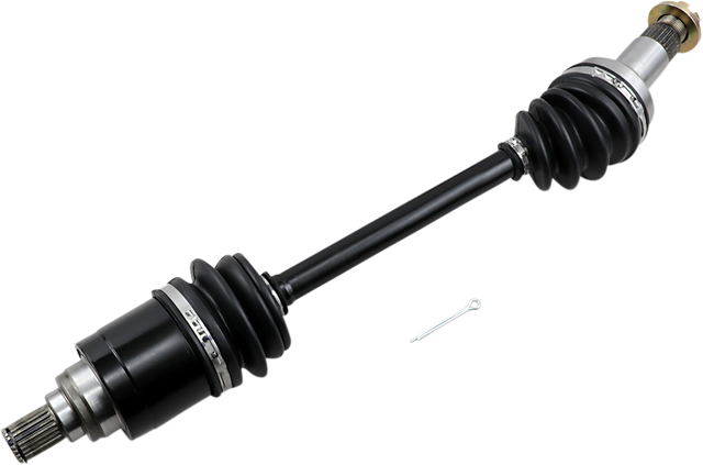 Precision machined and heat treated solid chromoly steel center shaft, cages, races and ball bearings up to 35% stronger, Highest quality, most reliable, and toughest constant velocity axles on the market, Manufactured in a state-of-the-art ISO9001 and TS16949 certified factory, Induction heat treated joints packed with high performance moly grease, Designed to withstand the most rigorous conditions and terrain, High-strength spring steel retaining clips (where required), Torture tested to failure to ensure maximum durability, Exceed OEM quality in fit, form and function, Secure stainless steel dust boot clamps, Fully assembled for easy installation, Precision rolled splines and threads