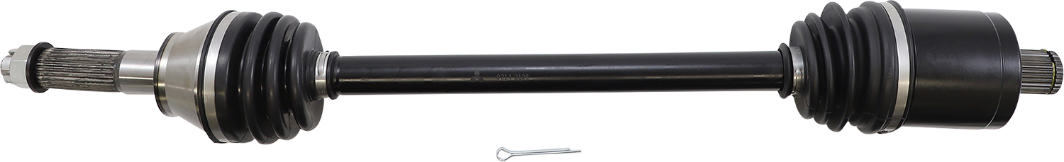 Precision machined and heat treated solid chromoly steel center shaft, cages, races and ball bearings up to 35% stronger, Highest quality, most reliable, and toughest constant velocity axles on the market, Manufactured in a state-of-the-art ISO9001 and TS16949 certified factory, Induction heat treated joints packed with high performance moly grease, Designed to withstand the most rigorous conditions and terrain, High-strength spring steel retaining clips (where required), Torture tested to failure to ensure maximum durability, Exceed OEM quality in fit, form and function, Secure stainless steel dust boot clamps, Fully assembled for easy installation, Precision rolled splines and threads