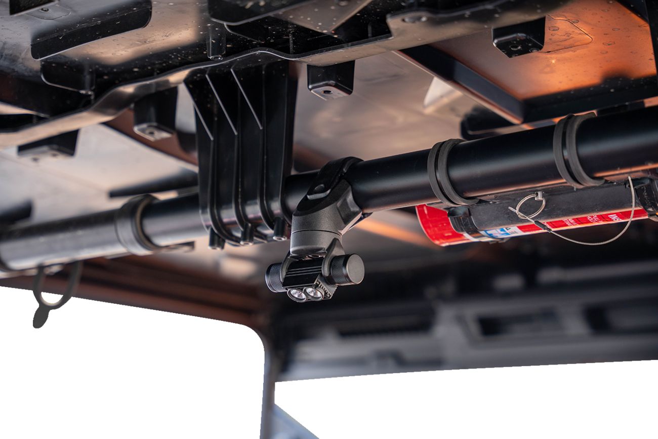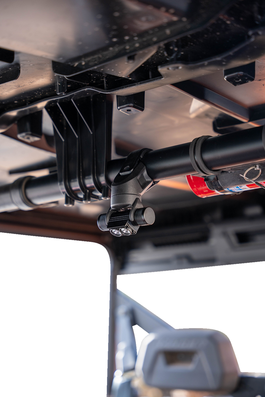 360? angle adjustment, Endless mounting options, Includes LED rechargeable light, Made with the highest grade super tough nylon, Included Custom Clamp System (CCS) mounts to all round tube and profiled roll cages for endless mounting options