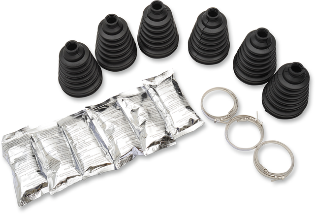 Perfect for ATVs and UTVs with extended suspension axles as found on Polaris RZR's, Can Am Mavericks, and many other off road vehicles., Fits both inner and outer joints on both front and rear axles for unmatched coverage, Made from premium quality rubber in the USA, Each kit includes a fast boot X, stainless steel clamps, CV grease, and detailed instructions