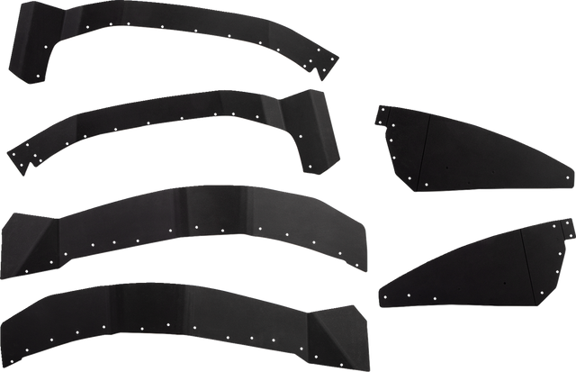Made of .125" black HMW haircell polyethylene, Cut with superior CNC 5 axis router, Sold as a complete set of 4 (Two front & Two rear), All edges are smooth, Custom bend design for maximum rigidity, Comes with complete mounting hardware