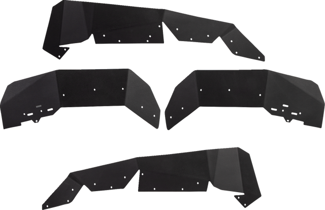 Made of .125" black HMW haircell polyethylene, Cut with superior CNC 5 axis router, Sold as a complete set of 4 (Two front & Two rear), All edges are smooth, Custom bend design for maximum rigidity, Comes with complete mounting hardware