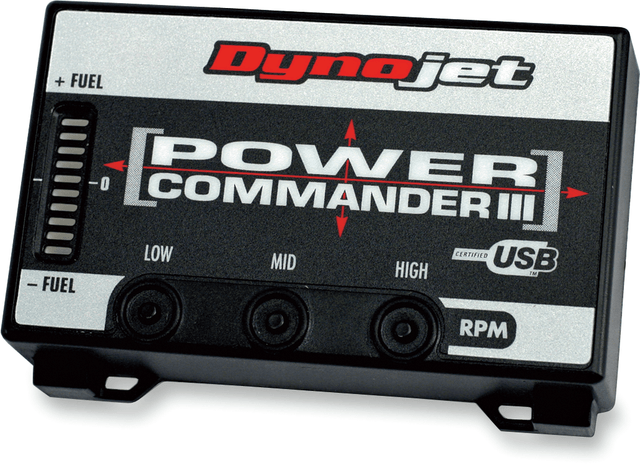 Each unit includes a built-in microprocessor and a specific map designed to improve engine performance over stock; Dynojet continuously maps new calibrations for each bike for downloading at their web site (www.powercommander.com), USB (Universal Serial Bus) port provides an instant and automatic connection to the Power Commander Control Center software; simply power up the unit and connect the PCIII USB to the computer with the supplied cable, Provides precise information for fine-tuning a fuel-injected motorcycle when changing an air filter, installing a new exhaust system or doing additional engine performance modifications, Direct injector control technology manages the fuel curve on models that do not have the sensors to monitor fuel adjustment, OEM-style wiring connectors with improved harness protection are supplied; no wiring modifications required, If you do not have a computer, you can change the settings with three touch buttons on the faceplate, Software is compatible with Windows 98SE/ME/2000/XP; opens all maps with .djm extension, Features an expansion port for future add-on modules from Dynojet, USB special cable and 9V battery power adapter are included, Includes easy-to-follow instructions, Made in the U.S.A.