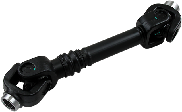 Heat treated carbon steel, Long lasting operation, Vibration free design, Direct OEM replacement, Powder coated black for extreme durability, Heavy duty u-joints with greased fittings, Replaceable u-joints