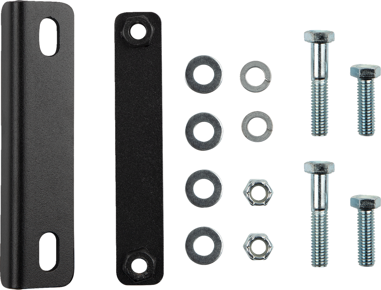 Triangulated push tube for maximum strength and durability, Heavy-duty 2" square steel tubing, Front mount design with up to 30" of lift, Powder-coated matte black for durability, Easy pull pin on/off mounting system, Extensions available separately for use with track systems, Made in the USA