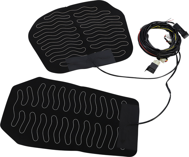 Add this seat warmer under your OEM seat cover for a comfortable ride all season long, Stretchable neoprene base material is water resistant and extremely pliable, Includes wiring, switch, relay, and complete instructions, Waterproof connectors for an all-weather installation, Hi/Low switch for adjustable temperature settings