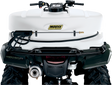 25-gallon corrosion-resistant polyethylene tank, Full drain-out capability with molded-in drain port, cap, and tether, 5" fill lid with tether, Full length drain sump, Larger hose wrap horns for hose storage, Both-gallon and liter fluid volume indicator on tank; molded wand clips, On/off switch, fuse, 96" lead wire with quick disconnect included, Solid suction tube, Pistol grip handwand with adjustable pattern tip and 15' hose, Maximum horizontal throw 30', Max vertical throw 18', Made in the USA, Must use with straps or tie-downs (not included).