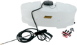 25-gallon corrosion-resistant polyethylene tank, Full drain-out capability with molded-in drain port, cap, and tether, 5" fill lid with tether, Full length drain sump, Larger hose wrap horns for hose storage, Both-gallon and liter fluid volume indicator on tank; molded wand clips, On/off switch, fuse, 96" lead wire with quick disconnect included, Solid suction tube, Pistol grip handwand with adjustable pattern tip and 15' hose, Maximum horizontal throw 30', Max vertical throw 18', Made in the USA, Must use with straps or tie-downs (not included).